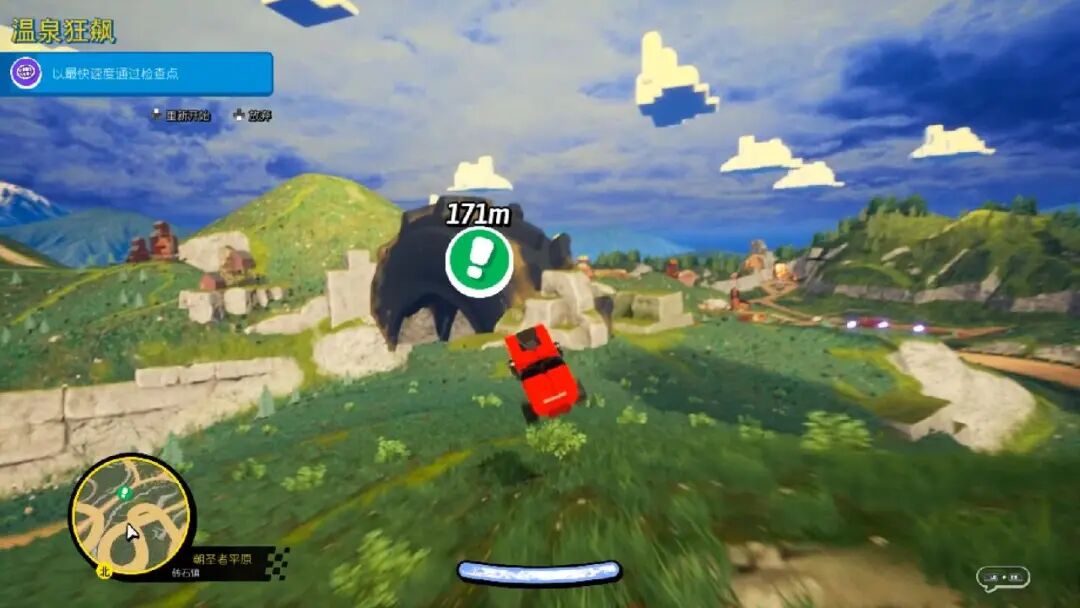 剧情中前往下一座城市需要提升自身等级,除了赢得格子旗获得大量经验参加飞驰不息活动也可以提升等级。飞驰不息活动以拱门的方式出现在各地,停留在门前可查看活动详情,穿过拱门的刹那活动开始。这些活动大多是以规定的速度通过某地,用时越少获得的评价越高,自然经验也就越多。