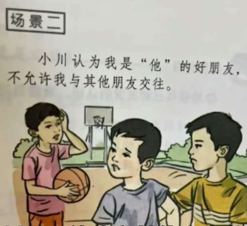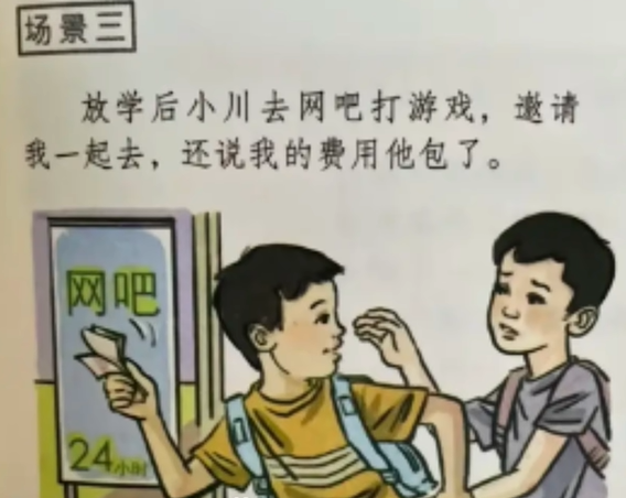 故事的起因是网友将义务教育课本《道德与法治》七年级上册第47页插画上传到了网络,在这幅组图中,描绘了一个调皮捣蛋形象的小川与对此感到烦恼的“我”。