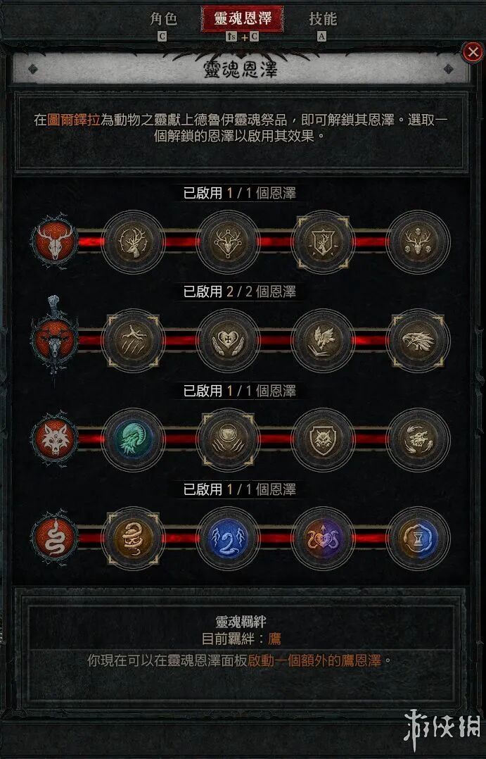本作中依旧是有5个职业,其中野蛮人、德鲁伊、死灵术士以及法师这4个都是暗黑系列中的老面孔(其实新职业游侠可以看作是D2的刺客+D3猎魔人的组合),为了丰富职业的玩法,这一次游戏中加入了每个职业的专属能力。
