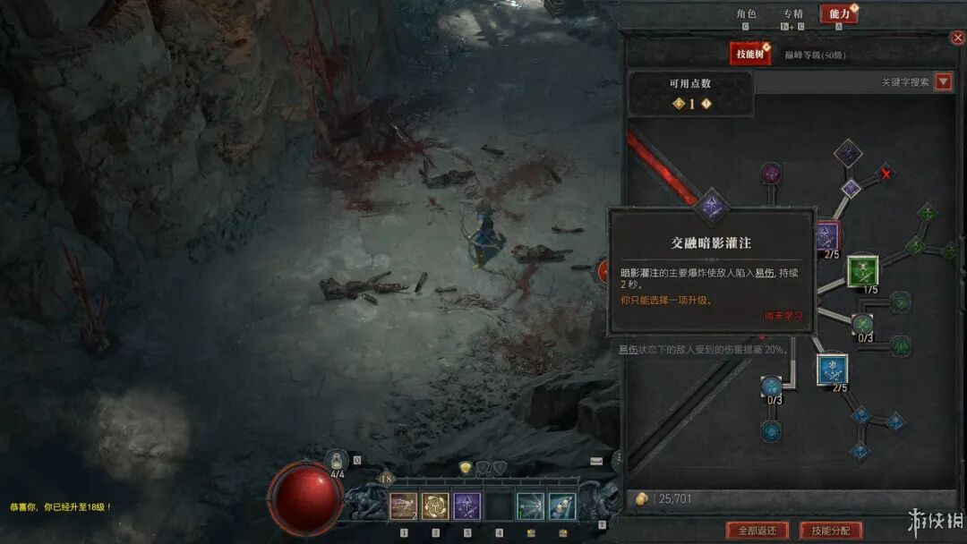 另一种新玩法“亡者低语”其实就是D4的世界任务,解锁该玩法后打开地图就能看到相当多的任务标记,完成对应任务后会获得任务资源“恐怖垂青”,每收集十份“恐怖垂青”就可以去找秘语之树兑换奖励。