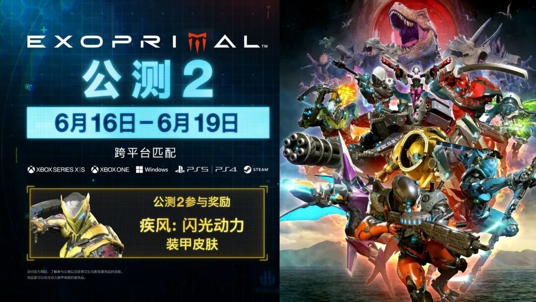 团队恐龙射击动作游戏《原始袭变》宣布该作将于6月16日至6月19日期间举行第2次公开测试。第2次公开测试(OBT2)将追加初期剧情体验、剧情相关任务及10人合作任务。游戏将于7月14日正式发售,登陆PS5、XS|S、PS4、XB1、PC平台,首发加入XGP。