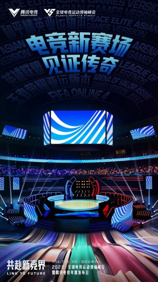 2023年全球电竞运动领袖峰会暨腾讯电竞年度发布会由深圳市文化广电旅游体育局、中国音像与数字出版协会电竞工委指导,腾讯电竞主办,深圳市宝安区文化广电旅游体育局、深圳市宝安区科技创新局支持,将于2023年7月14日至15日在深圳国际会展中心举行。