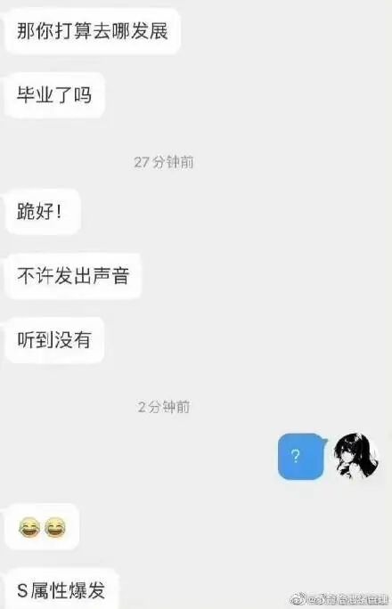 然而,不知道是什么原因,对方就好像“突发恶疾”一般开始玩起了角色扮演,以主人的身份给自己下达了几条意味不明命令,最后还仿佛从第二人格清醒过来一般,来了句我 “S属性爆发”。