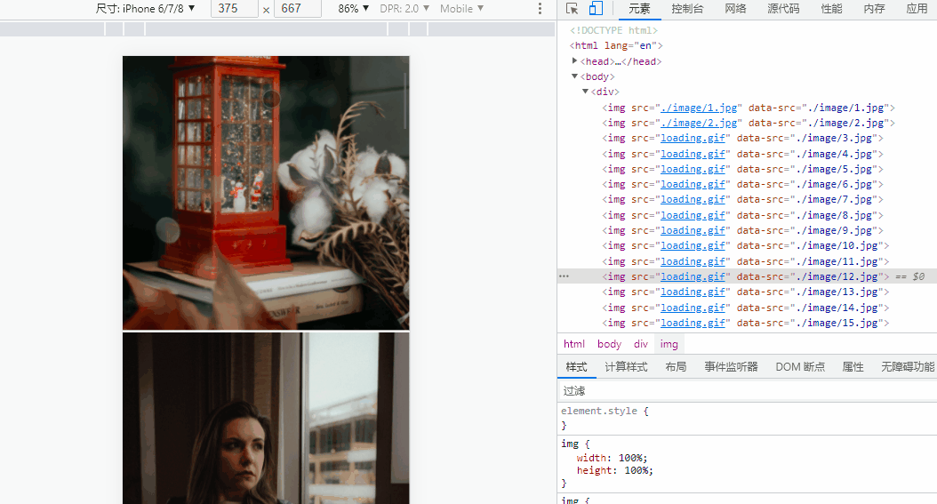 上述代码表示,遍历所有的图片,对其进行观察原生是否可见,如果元素可见,就把真正图片替换loading