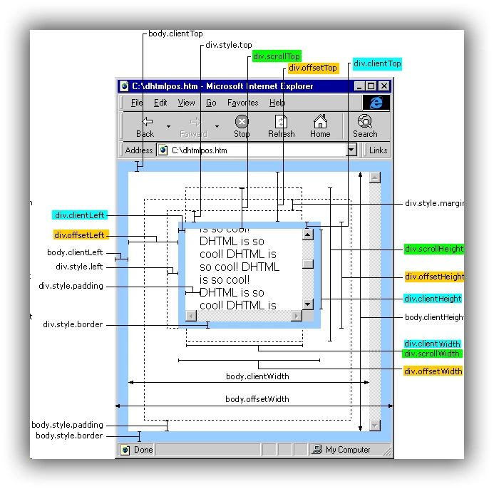 这次我们要讲的 offset、scroll、client 就是出自“ document 家”。先配两张图来看看这三个到底是什么