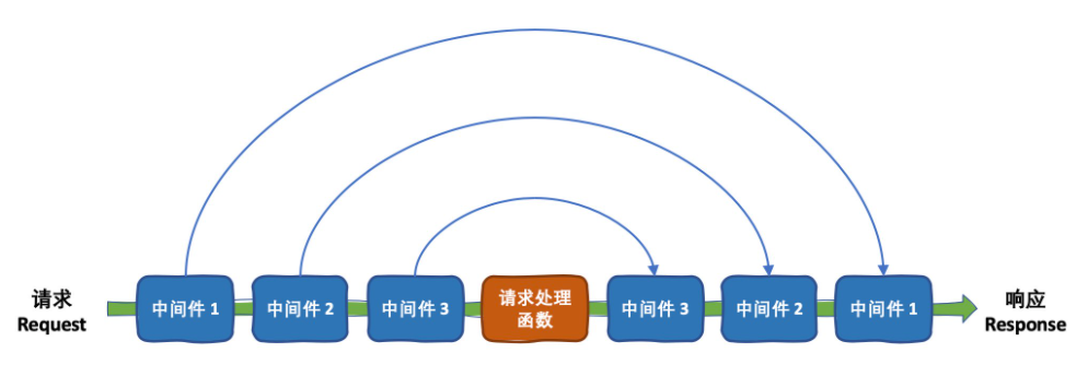 请求(Request)直接依次贯穿各个中间件,最后通过请求处理函数返回响应(Response)。再来看看 Koa 的中间件是什么样的: