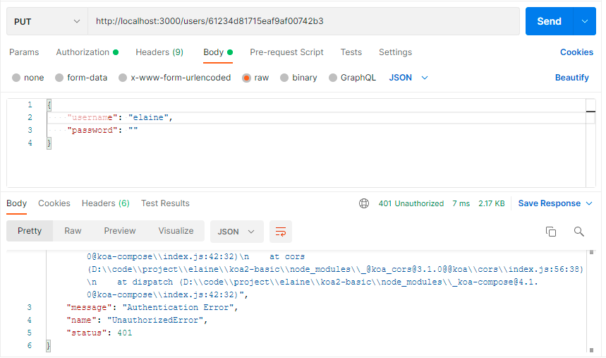 Token 的中间件和签发都搞定之后,最后一步就是在合适的地方校验用户的 Token,确认其是否有足够的权限。最典型的场景便是,在更新或删除用户时,我们要确保是用户本人在操作。打开 controllers/user.js
