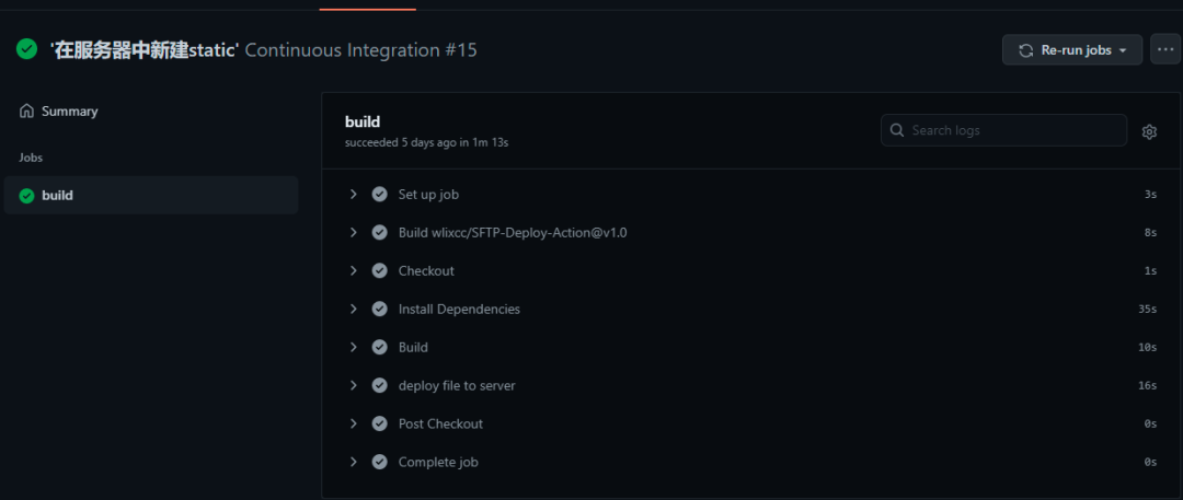 具体可参考 使用 使用 Github Action 部署项目到云服务器[7] 中的操作,我讲讲在使用这位大哥写的 SFTP-Deploy-Action@v1.0 action 时遇到的坑