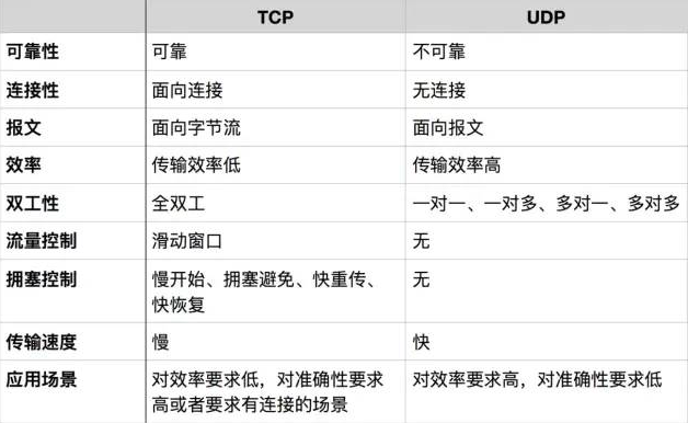 关于 TCP 和 UDP ,这张图表能更好地对比分析