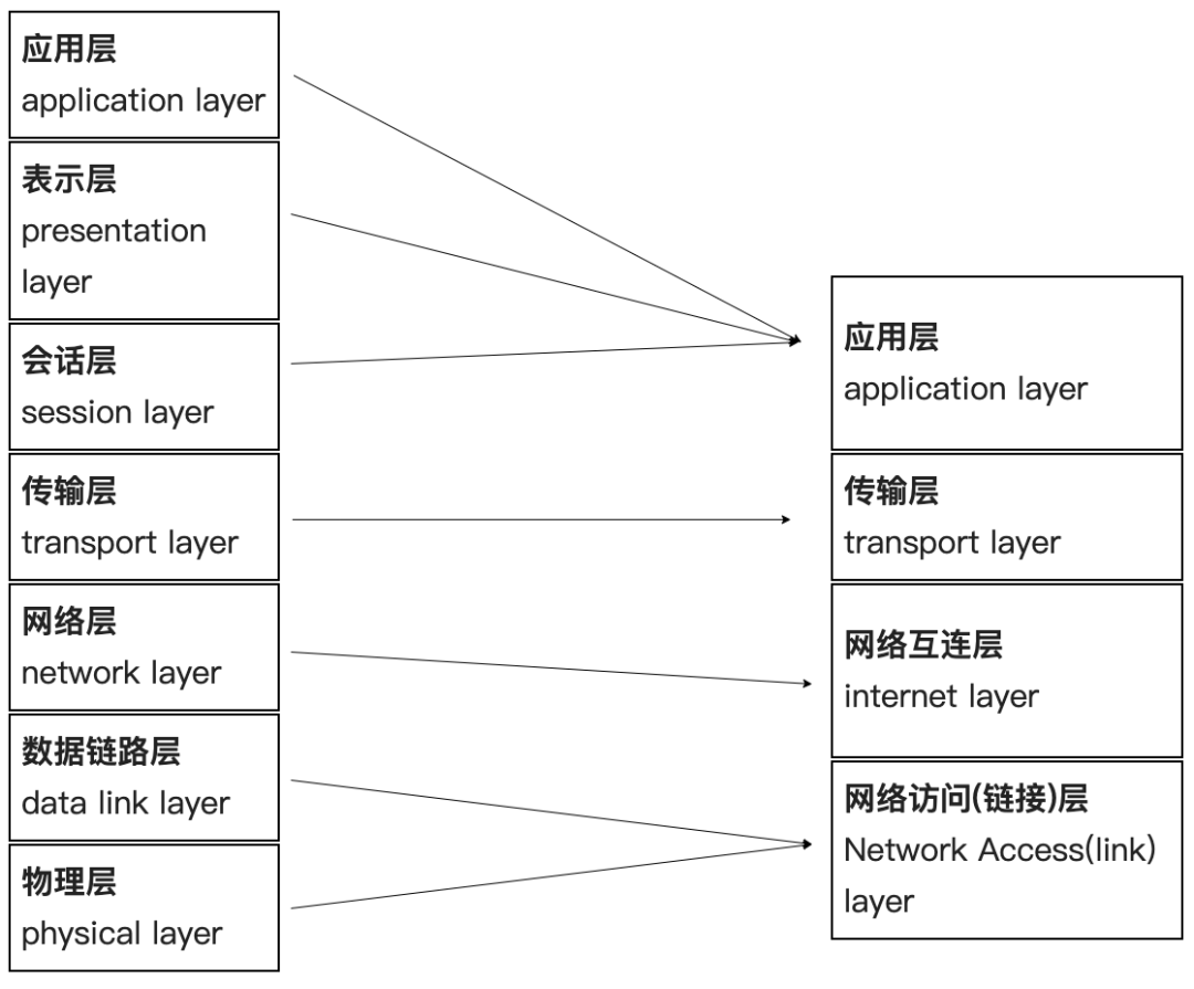 两个分层模型的映射关系
