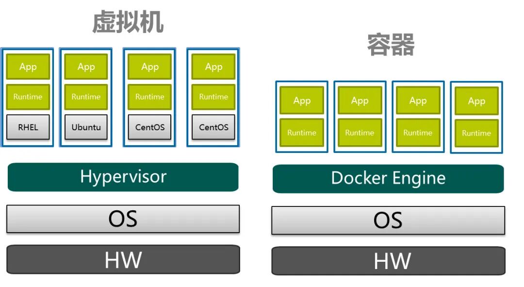 docker 的运行不需要额外的虚拟化管理程序的支持,它是内核级的虚拟化,可以实现更高的性能,同时对资源的额外需求很低
