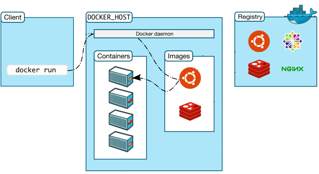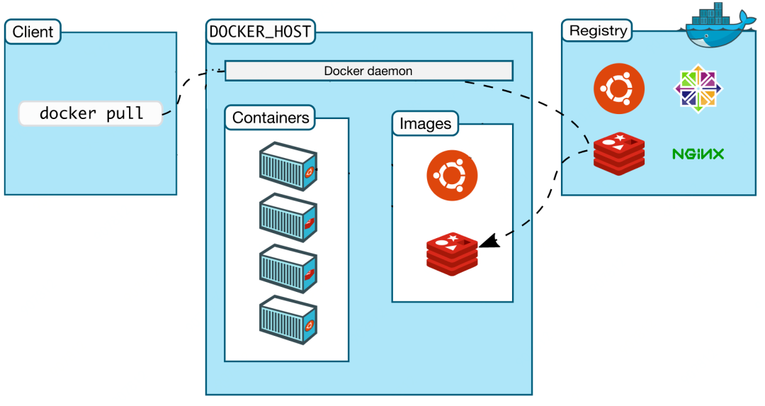 这个命令的实现很简单,用户通过 docker client 发送命令,docker daemon 接受到命令后向 docker registry 发送 image 下载请求,下载后存放在本地,这样我们就可以使用 image 了