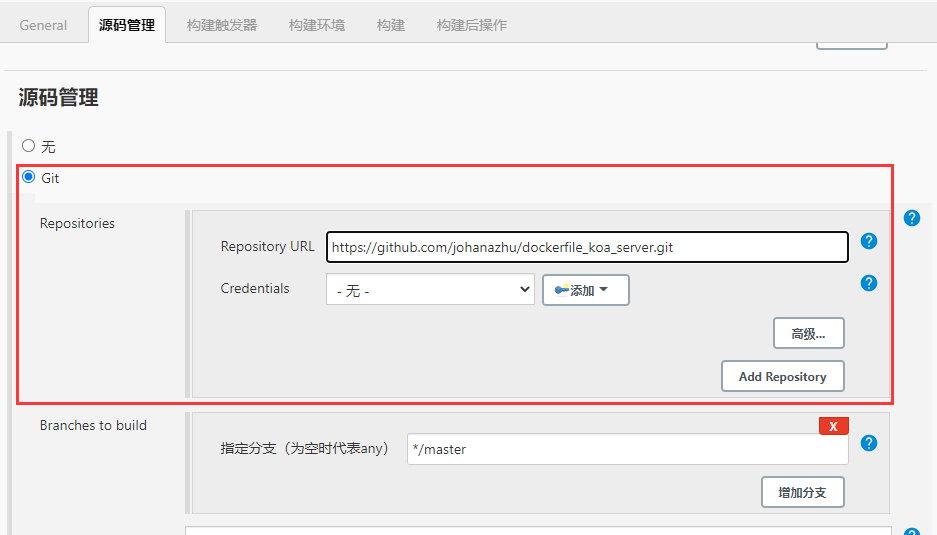 git initgit add .git commit -m 'first_commit'git remote add origin https://github.com/johanazhu/dockerfile_koa_server.gitgit push -u origin master