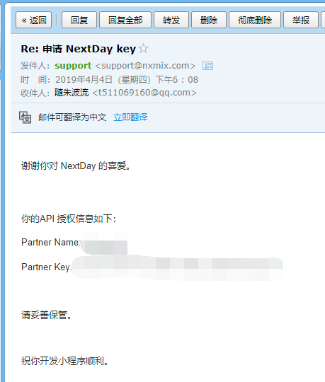 如要跑通这个项目,首先要去申请 PartnerName 、 Partner Secret,这样就能跑通项目,具体的答疑已经在 NextDay 的README[8]中回答,如还有其他疑问,可在Issuse 区提出