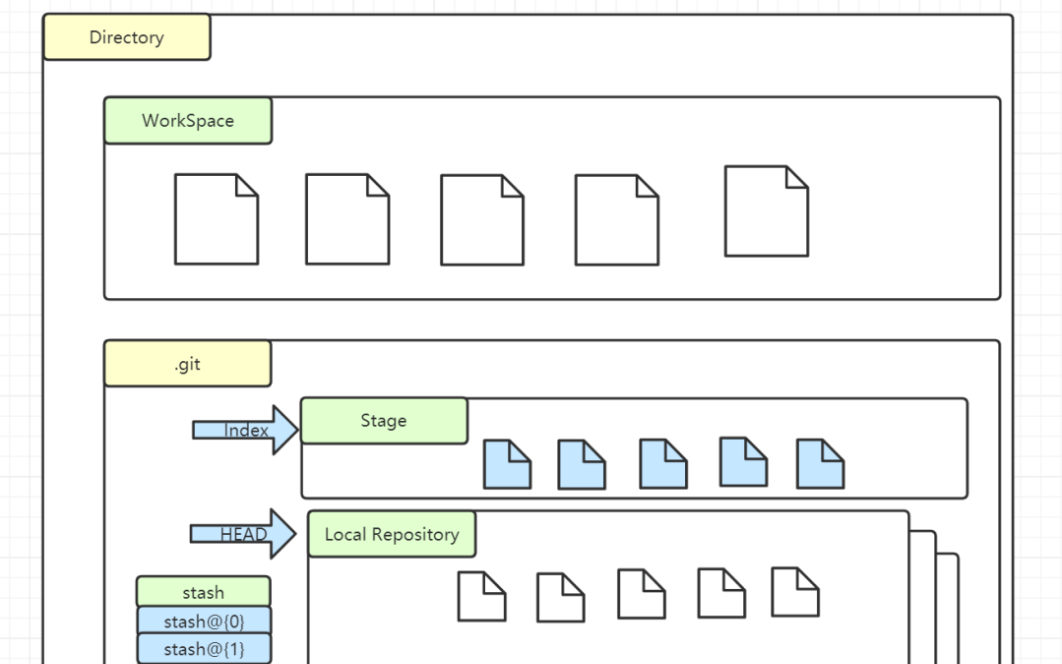 Index/Stage(暂存区):一般存放在 .git 目录下,当你 git add 改动文件,改动的文件就放入在「暂存区」