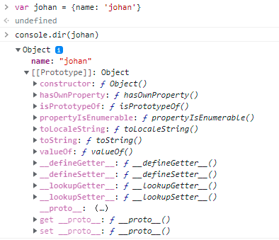 var johan = { name: 'johan' };console.dir(johan);