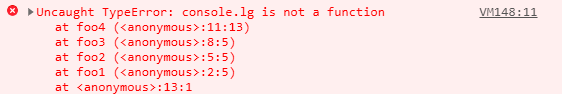 function foo1() { foo2();}function foo2() { foo3();}function foo3() { foo4();}function foo4() { console.lg('foo4');}foo1();