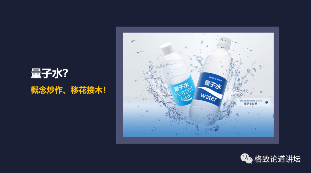 但是我要说的是,此量子可能非彼量子,大家手里拿的每一瓶水可以说都是量子水,因为量子效应是水本身的一种属性,所以这是一个概念炒作现象。