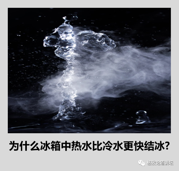 另外,如果我们来做一个实验,把一瓶热水和一瓶冷水同时放进冰箱,你会发现热水比冷水更快结冰。