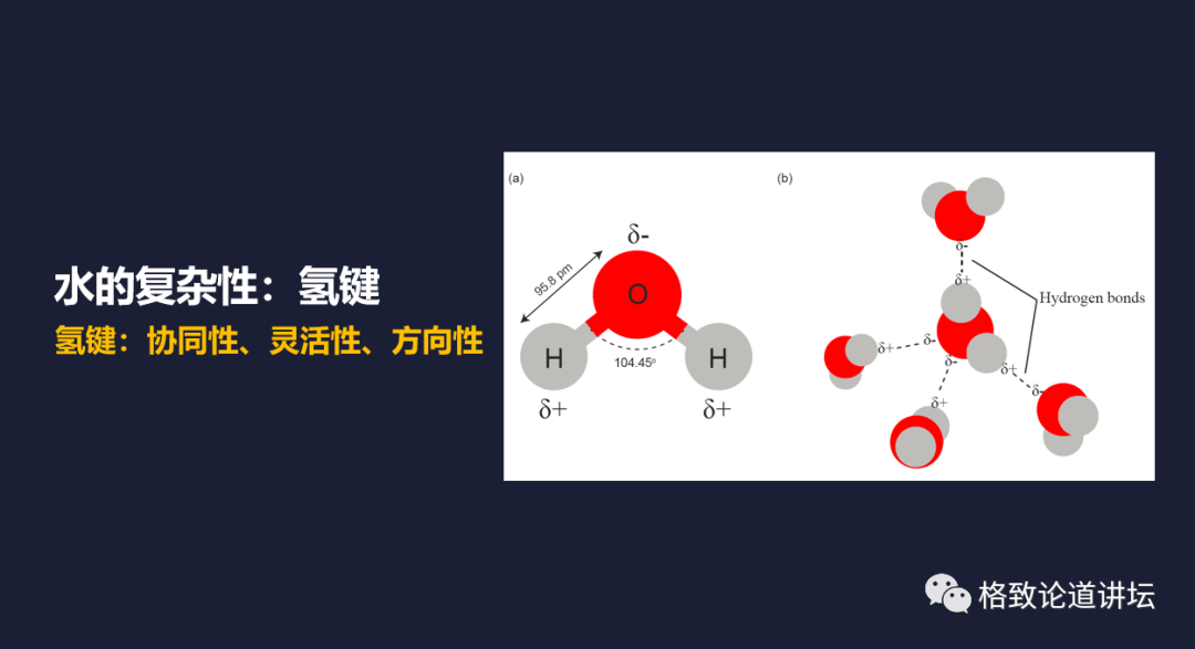 由此可以看到,从结构上来说,水是非常柔软的物质,但在科学上它是非常难啃的一块骨头。
