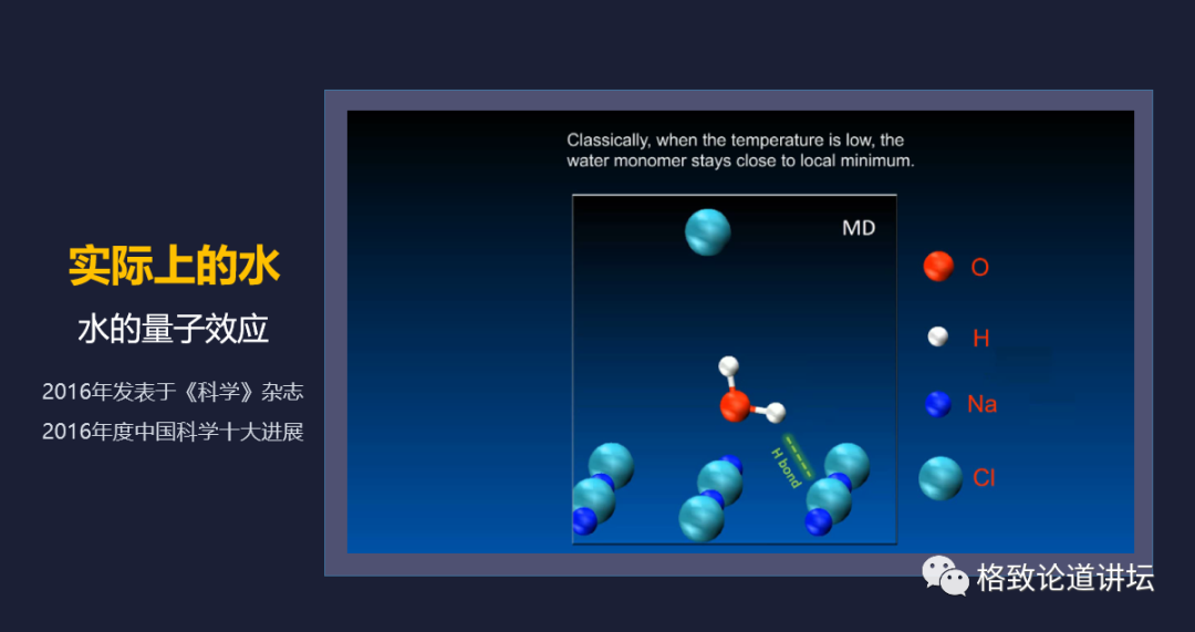 但是,四年前我们在《科学》杂志上发表的一篇文章中提到,水的结构其实并不是这么简单,水具有一些量子效应。