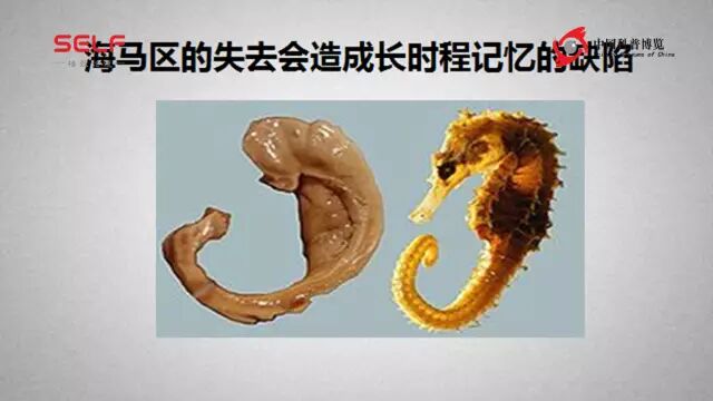 如果是一个成人,脑子受了损伤,记忆也会出问题。我这里想举一个在神经科学界非常重要的例子,一个叫做海马的脑区,如果海马这个脑区出现问题,那么会出现很严重的记忆障碍。它叫海马是因为这个组织长的和真正的海马很像,所以叫做海马,很漂亮的一个结构。