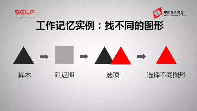 我们在实验室里面也让我们的实验动物或者人,做类似的类似的行为:比如说在这个任务里面我们先给受试者一个视觉刺激,然后延迟的时候把样本隐藏起来,选择的时候,我要让人或者是动物选择一个和刚才样本不一样的刺激,就这样一个任务。