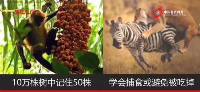 第二个例子,如果你是一个捕食者,那么需要学会去捕食;如果是个被捕食者,需要学会不要被人吃掉,对不对?或者被别的动物吃掉。所以这是明显例子,这都是和记忆有很大的关系。