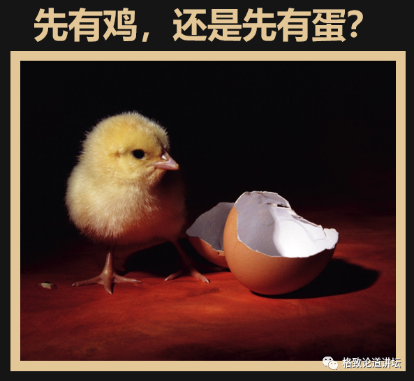 有个问题很有趣,先有鸡还是先有蛋?我估计一群人有不同的答案,你说先有鸡,鸡是从哪儿来的?你说先有蛋,蛋是谁下的?
