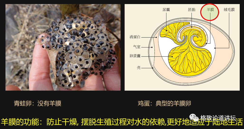 所以一开始我们讲到了登陆,有了羊膜卵可以更好地适应陆地环境,这就是羊膜卵的出现。