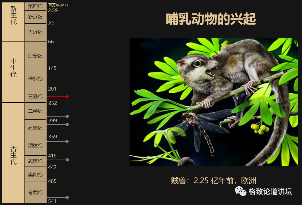 我们再讲下一个演化事件:哺乳动物的兴起。