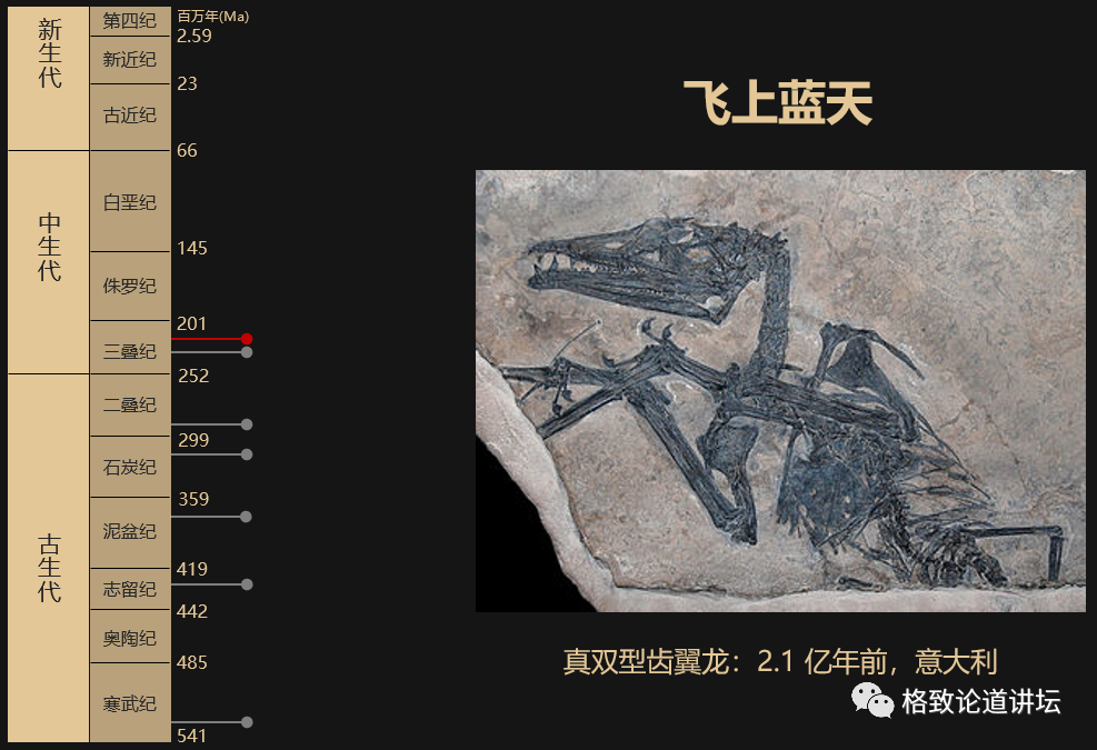 我们知道,之前脊椎动物这么长时间的演化,一直是在水里头和陆地上进行的,没有一个飞上蓝天,可广阔的天空还空着呢!