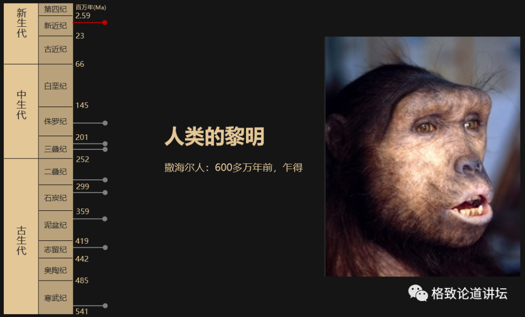 刚开始出现时候的样子也很奇特,这样子反正我是不太喜欢,但这就是我们祖先的样子,600多万年前在非洲,非洲是我们人类的起源地。