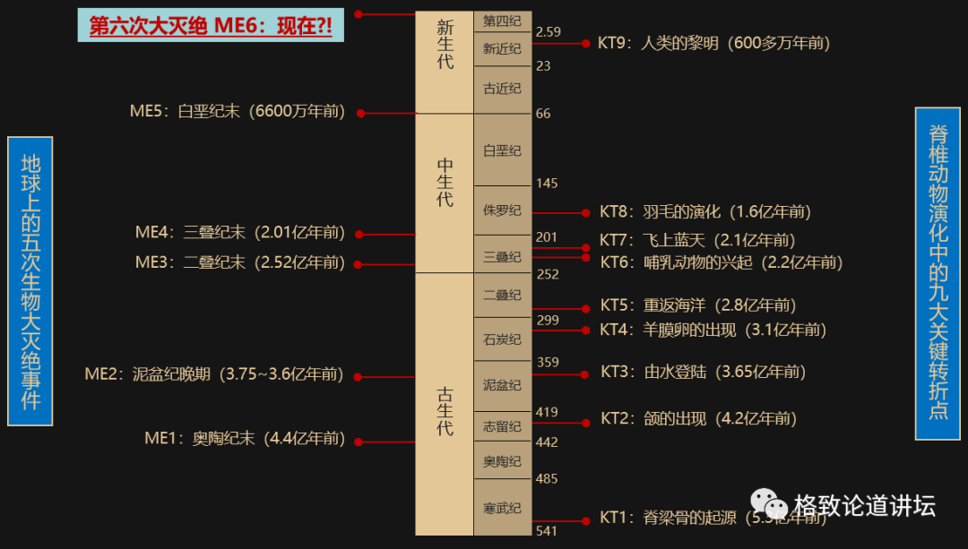 我们刚才已经介绍了九个重要的演化事件,这些都是脊椎动物历史上九次重大的转折事件,它叫关键转折点,英文是key transitions。
