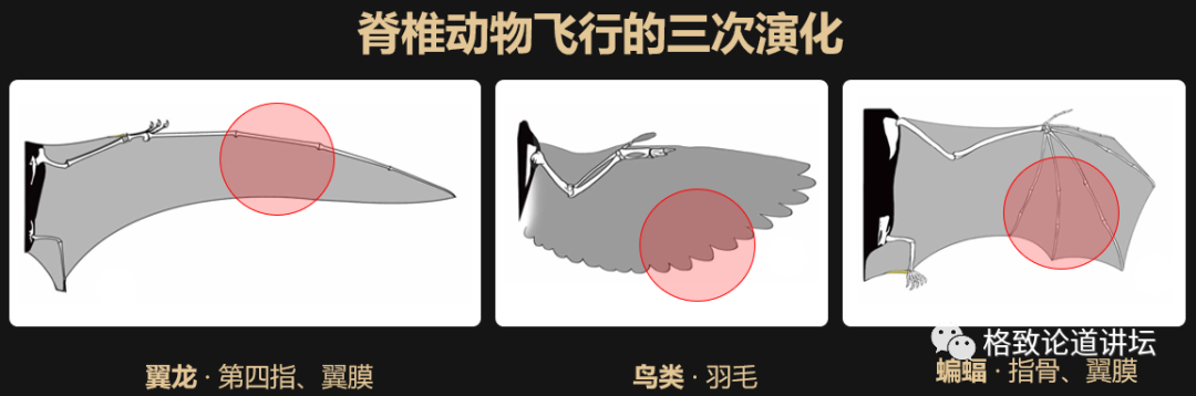 脊椎动物在成功地实现飞行这个能力的过程中,有三次主要的演化。