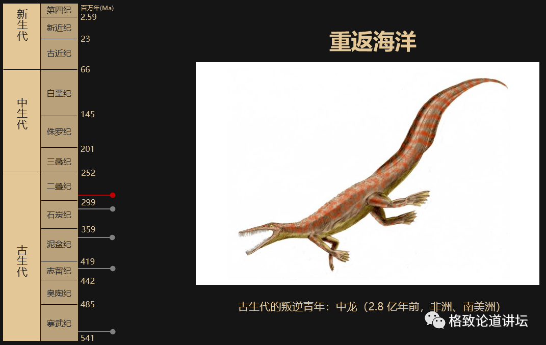 这样就有最早吃螃蟹的重返海洋的脊椎动物,是什么呢?以中龙为代表。