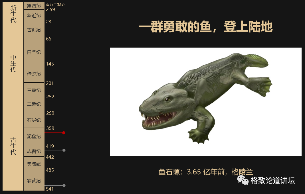第三个重要的事件,是从水到陆。