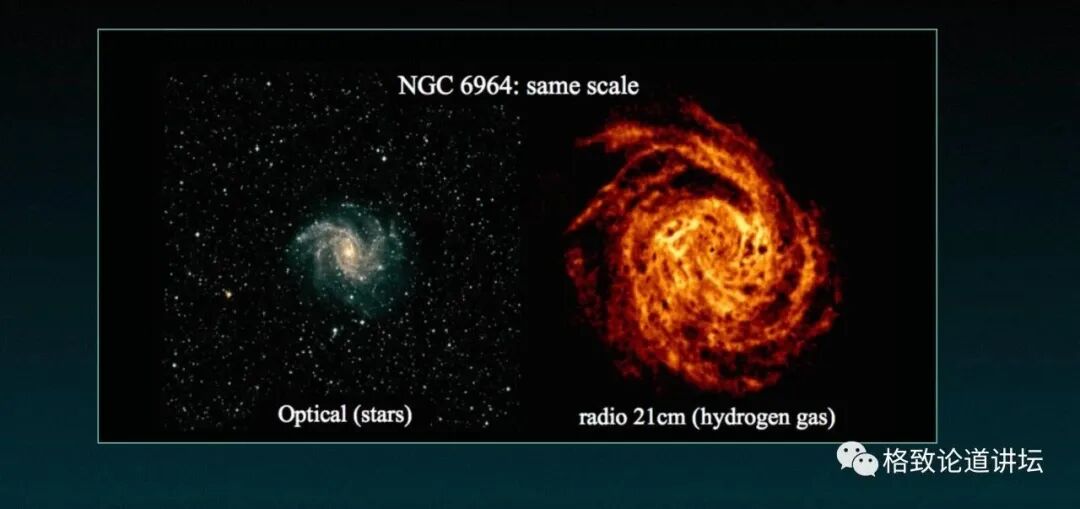 如果去测量这个辐射的强度,就会看到这个星系里头的中性氢,或者说氢原子是怎么样分布的。