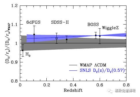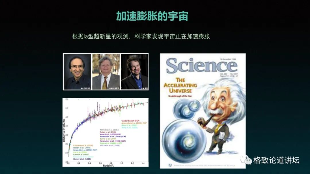 宇宙学当中的这个情况略有不同,但道理是一样的,就是测量宇宙中的不同时刻,它膨胀到底有多快,然后看看它的速度是怎么变化的。