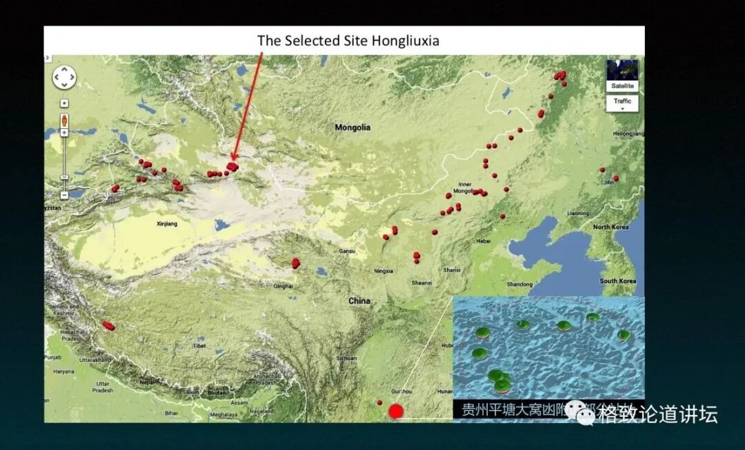 这个图是在FAST望远镜的周边,我们也做过选址,大家可以看到那些绿色的,是我们通过遥感地图找出来的一些小平地。