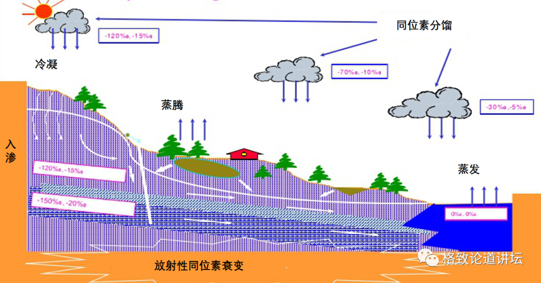 这张图就变成了原子的水循环,它的格局跟前面看到的是类似的,但是我们在云上都标上了它的原子和同位素。