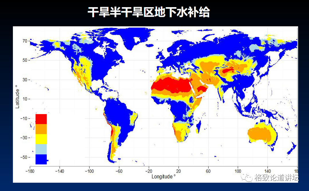 这是全球干旱区的分布,这些地方是研究地下水的重点地区。