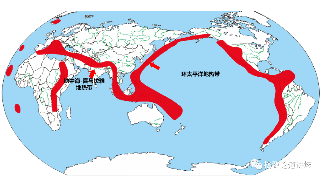这两个地方叫构造结,构造结过去被认为是没有高温地热的,可是现在我们发现都有高温地热,西边有西藏和川西这个地方的高温地热。