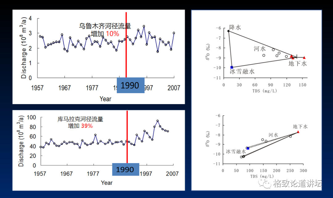 但是只有这样,我们才能够摸到冰川河的脉搏,摸到了以后我们恍然大悟,河水里边的增量是来自冰川的融化。