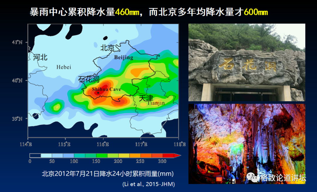 北京7.21很特别,在不到24小时时间内降雨量达到了460毫米,而北京常年的年平均降雨量只有600毫米。