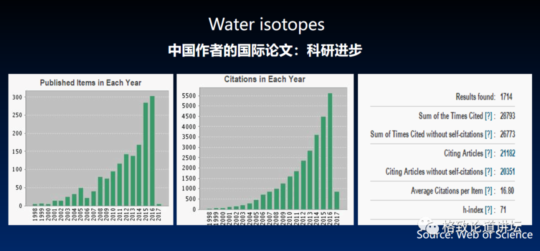 我们基本上把水循环当中的密码的基因图谱做出来了,中国学者在世界上发文章的数量和被引用的数量在过去20年里是指数增长,所以对世界的贡献逐渐增大。