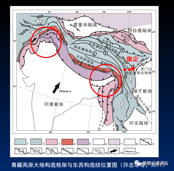 最近比较有意思的现象是在青藏高原,青藏高原的喜马拉雅的构造就是印度版块和欧亚版块碰撞的时候,东西有两个拐弯的地方。