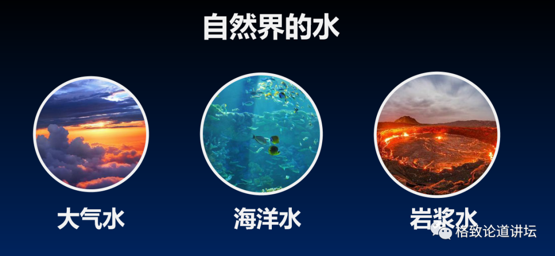 自然界遇到的水,就是这三种水经过不同比例的混合,加上它们自身的演化。