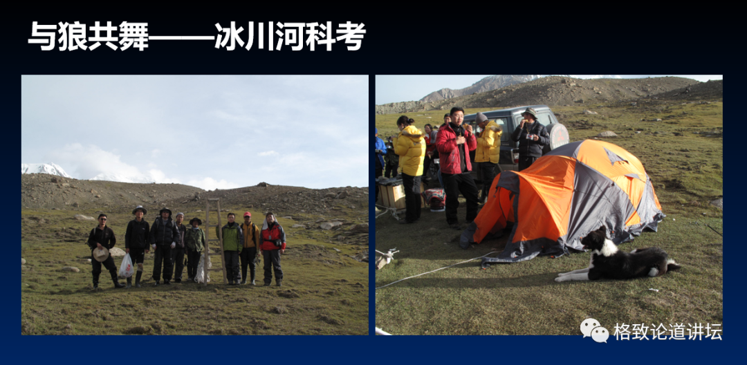 我们到冰川前沿去考察,在冰川前沿搭帐篷,住在这个地方,这叫与狼共舞。
