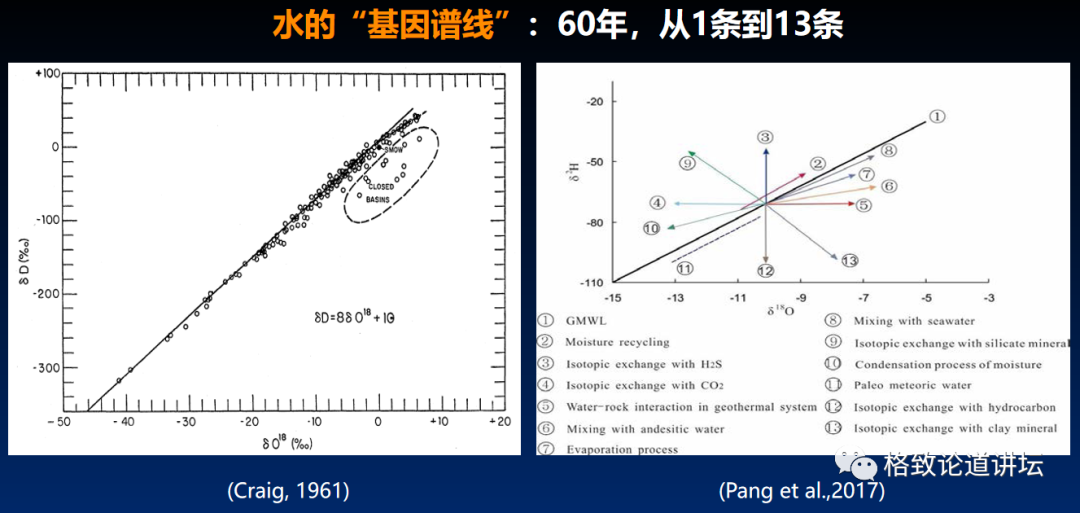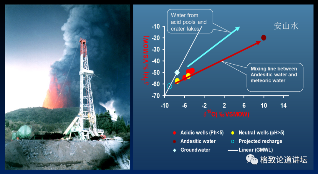 但在这个地方,我们逮着了岩浆水,岩浆水最早的解码工具就是这样的一条线,这是60年前(Hamon Craig)设计的降水线。